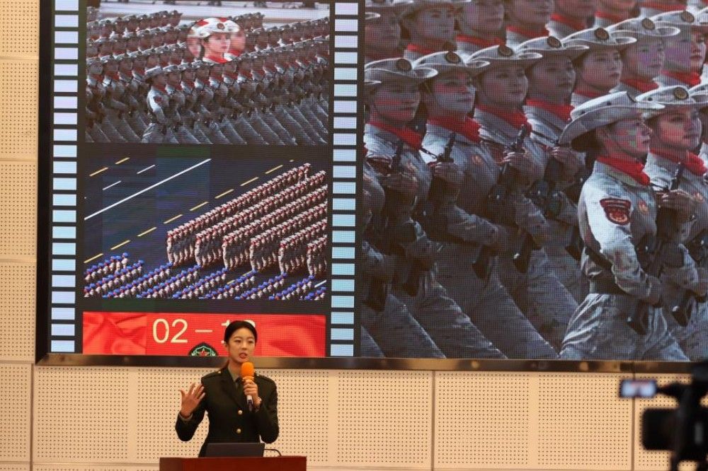 天津市学联宣讲团成员、南开大学学生康蓓君以《青春在使命中绽放》为题作分享,她结合亲身参与阅兵的宝贵经历,细数训练与受阅过程中的难忘瞬间,满含荣光地从爱国之基、爱国之魂、爱国之路三个维度,生动诠释新时代青年炽热的爱国情怀,深刻呼应“十五五”规划的强军目标与时代号召。