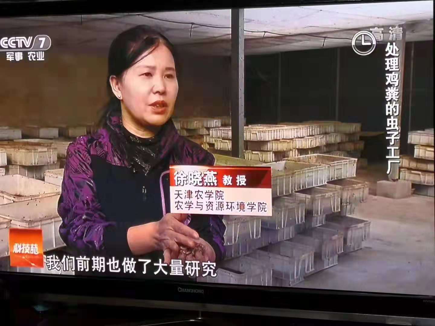 徐晓燕教授团队与天津食品集团下属企业天津农垦渤海农业集团有限公司合作,在天津市科委和农委项目资助下,研发了利用环境昆虫黑水虻、黄粉虫等处理畜禽粪便和废弃蔬菜等农业废弃物,显著提高了农业有机废弃物处理的效率和效益,相关研究成果成功应用于企业,实现了农业的循环高效发展。2018年10月,徐晓燕教授受邀在中央电视台乡村振兴规划大讲堂进行了讲授,并受聘为中国乡村振兴研究院智库专家。2018年11月27日,中央电视台农业频道“科技苑”栏目对团队成果的应用进行了30分钟的专题报道,该成果也得到了农业农村部韩长赋部长、天津市李树起副市长等领导的关注和视察肯定。