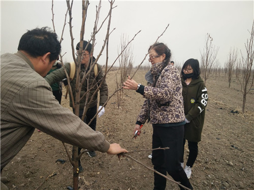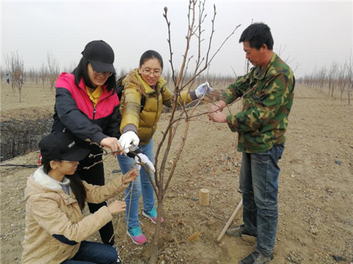 师生分组到户,为果农的梨树进行修剪整形的同时,对果农进行技术培训,解决种植期间遇到的种种难题,以达到果树产量高、品质好的目标,切实有效地提高当地农民的经济效益。