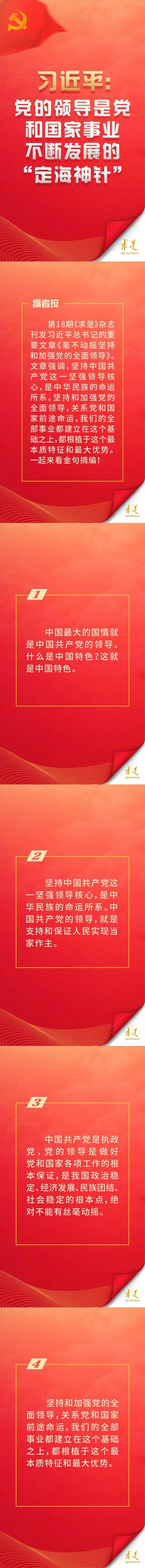 习近平:党的领导是党和国家事业不断发展的“定海神针”