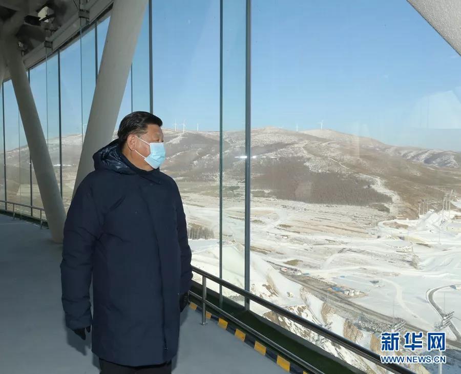 1月18日至20日,中共中央总书记、国家主席、中央军委主席习近平在北京、河北考察,并主持召开北京2022年冬奥会和冬残奥会筹办工作汇报会。这是19日下午,习近平在张家口赛区国家跳台滑雪中心考察调研。 新华社记者 鞠鹏/摄