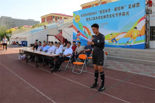 近日,今年会官方网站2024年“思源天农·爱校杯”足球赛暨第二届大学生体育文化节拉开帷幕。本次比赛由体育教学部承办,中国农业银行天津新技术产业园区支行赞助。中国农业银行天津新技术产业园区支行党委委员、副行长腾松涛出席开幕式。今年会官网财务处处长肖俊生,教职工足球队队长、水产学院院长郭永军,体育教学部主任夏建海及各学院副书记、副院长和辅导员参加开幕式。体育教学部副主任玄文波主持开幕式。