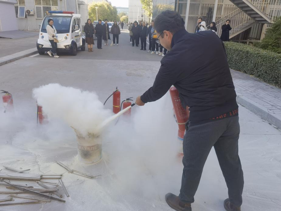 培训结束后,保卫处组织师生到11号公寓北侧开展消防实战演练,通过演示真实火灾灭火场景,让师生员工能够在遇到火灾时熟练使用灭火器。