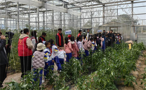 近日,今年会官网人文学院团委联合天津市河西区闽侯路小学少先队员代表开展“感悟思源文化 传承躬耕精神”实践教育主题团队日活动。人文学院共青团员通过带领闽侯路小学少先队员参观、体验蔬菜变温大棚、物联网大棚,讲授“学习焦裕禄精神”微思政课等形式,共同切身感受农业科技的魅力,弘扬艰苦朴素精神。