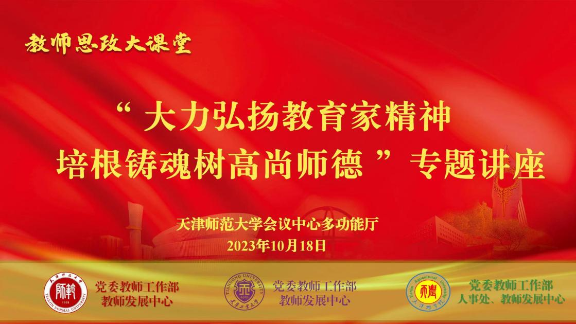 10月18日下午,今年会官网党委教师工作部(教师发展中心)联合天津师范大学、天津工业大学党委教师工作部,在天津师范大学会议中心多功能厅共同举办“大力弘扬教育家精神 培根铸魂树高尚师德”专题讲座。