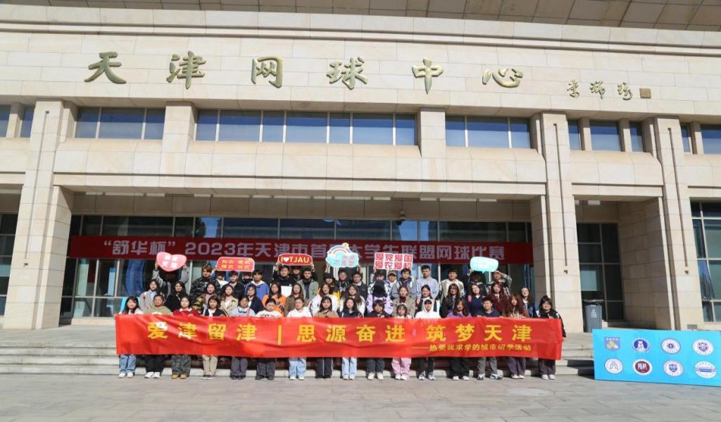 研学第一站,来到天津网球中心参加天津市大学生网球联盟启动仪式暨“舒华杯”2023年天津市首届大学生联盟网球比赛开幕式。