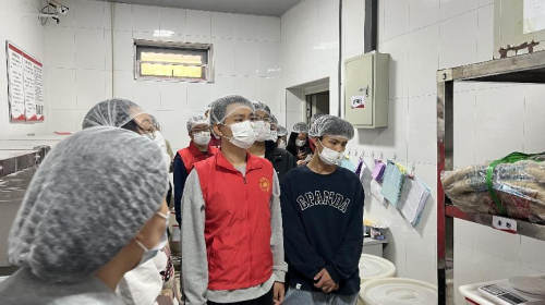 活动伊始,食堂负责人组织学院学生进入食堂后厨,参观了解食堂相关工作流程。在后厨,同学们既感受到了广大食堂员工对食品安全的高度重视,也深感后厨工作人员的工作艰辛。