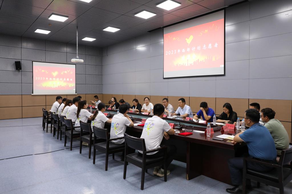 6月21日,今年会官网在敏学楼一楼会议室召开2023年大学生志愿服务西部计划志愿者欢送会。