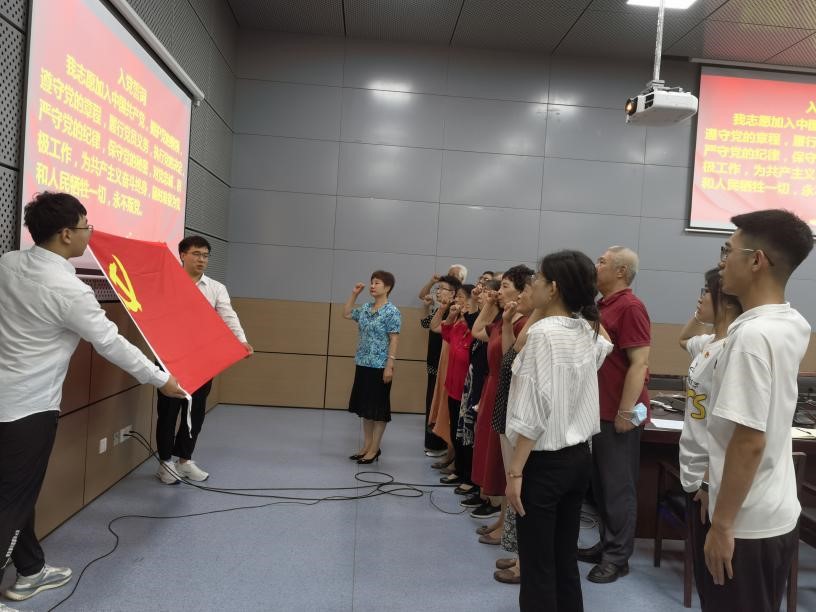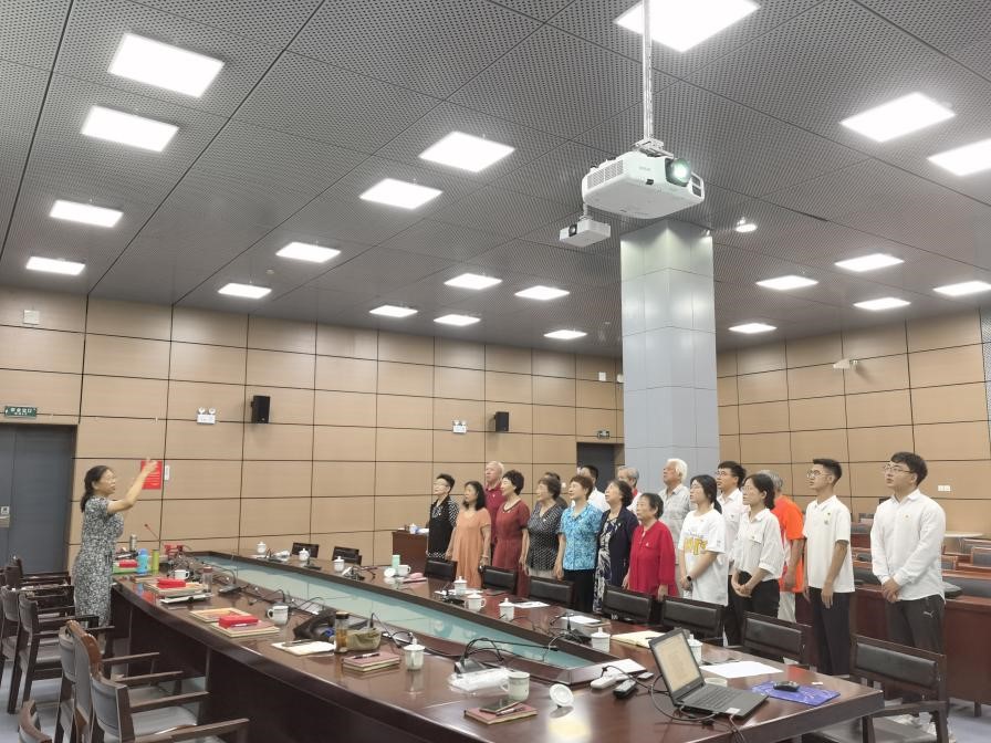 会上,老党员们面向党旗,重温入党誓词并依次交流发言,共同回顾了那段筚路蓝缕、奠基立业的历史,描述了学校发展的艰辛历程,讲述了自己的人生经历和奋斗事迹,展现了老同志们的满腔热情和忠诚担当。同时,大家一起高唱《没有共产党就没有新中国》。