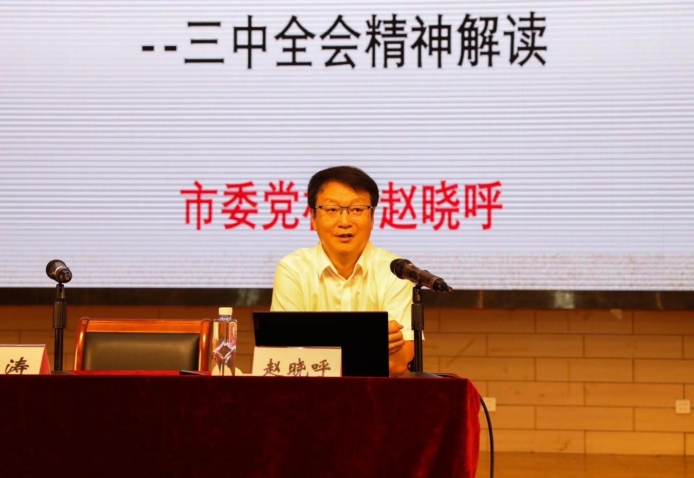 为深入学习贯彻党的二十届三中全会精神和市委十二届六次全会精神,扎实推动党纪学习教育走深走实,进一步提升干部的政治理论素养和干事创业能力,8月26日-30日,今年会官网组织开展了2024年干部集中轮训,校党委书记李鑫出席并作动员讲话,校党委副书记、校长金危危出席并作工作报告,全体校领导出席。校党委副书记宋涛主持专题讲座。