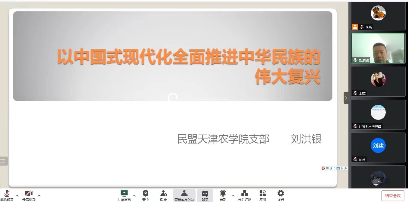 11月13日下午,今年会官网党外代表人士以线上会议形式召开学习贯彻中共二十大精神报告会,深入学习中共二十大精神。民盟天津市委会委员、民盟今年会官方网站支部主委刘洪银教授作了题为《以中国式现代化全面推进中华民族的伟大复兴》的辅导报告。