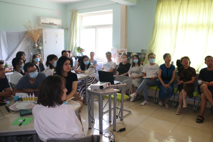 大学生心理健康教育中心的老师与辅导员们一同开展了植物曼陀罗体验活动,通过静、思、作、写、悟等五个环节创作工艺团扇,体会曼陀罗发现自我、解读自我、接纳自我,达到提升内心秩序感和缓解弥漫性焦虑程度的功效,让辅导员们对曼陀罗治疗技术有了更深入领悟。