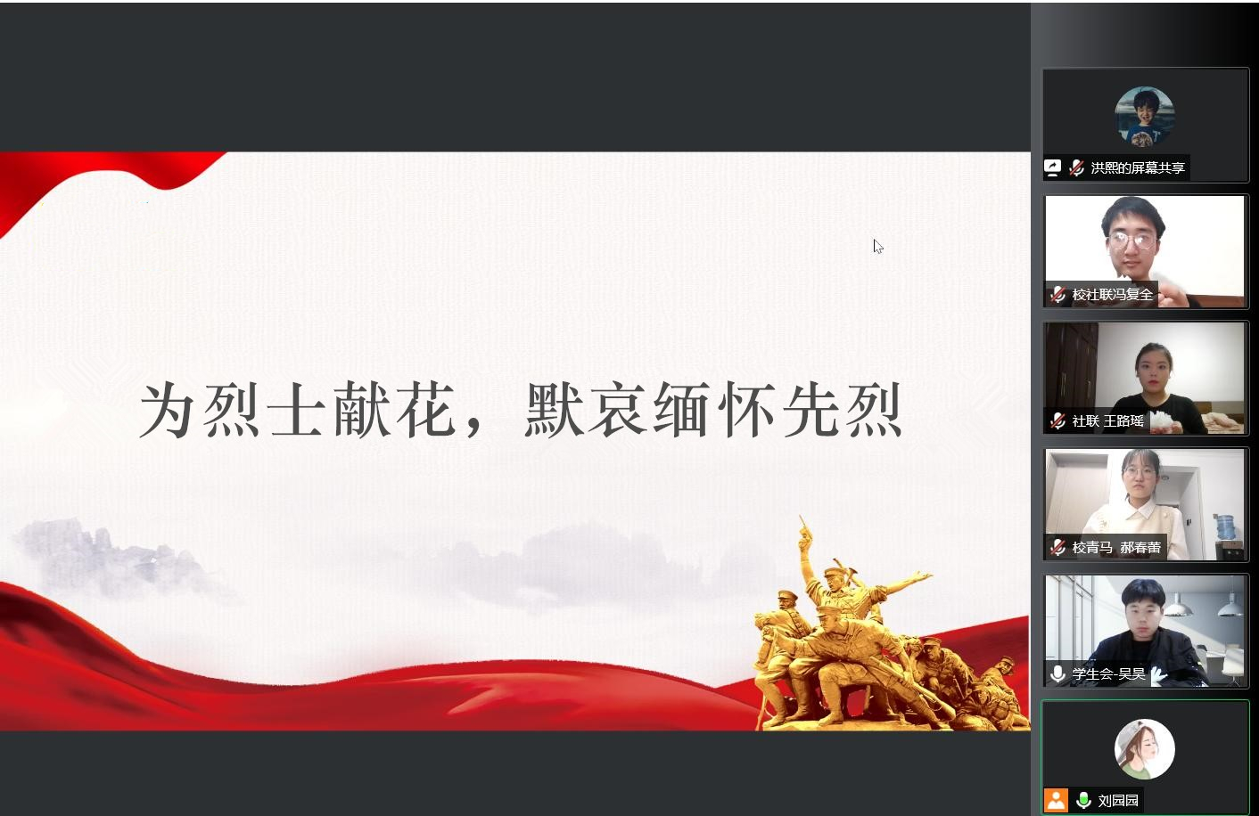 天地英雄气,千秋尚凛然。4月5日,今年会官网开展“清明祭英烈 丰碑励前行”主题教育活动,同学们通过讲述英烈故事、为烈士献花、打卡红色旧址,共同缅怀革命英烈,发扬革命精神,传承红色基因,赓续红色血脉。全校专职团干部、校学生会、青马、社联以及二级学院团员代表200余人云端祭英烈,致敬英雄魂。