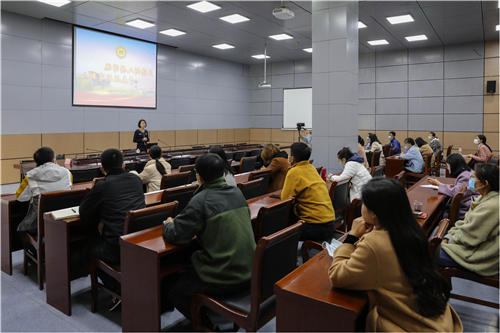 王丽英结合习近平总书记在党史学习教育动员大会上的重要讲话精神以《立德铸魂躬身践行 做好新时代的青春领路人》为题,阐释辅导员职业能力发展导向、学生工作体系与协同育人格局、辅导员加强自我学习的重要性。王丽英以辅导员素质能力大赛环节设置、解题方法、答题思维深刻剖析辅导员职业能力的具体侧重点,强调辅导员队伍应具备扎实的理论宣讲知识功底和宣讲能力,无论是在比赛中还是工作中提高辅导员思想政治教育话语权。引导辅导员以赛促学、以赛促能,从而在日常学生工作中让学生感受到辅导员从心里热爱学生,关爱学生,奠定扎实的工作基础。