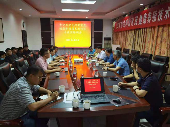 下午,邢克智、郭永军一行与天津农垦渤海农业集团有限公司代表及20多位一线养殖农户进行现场座谈。天津农垦渤海农业集团有限公司副总经理尚东维介绍了水产板块2021年的总体布置和安排,养殖生产中遇到的问题,强调校企合作的必要性和迫切性。总经理李修同表示,此次交流意义重大,不仅推动了校企共同承担的科研项目实施,而且解决了企业技术方面的燃眉之急。董事长袁思堃对专家表示感谢,回顾了公司和学校合作的历史,期望与水产学院在科研项目、人才培养、技术服务等方面展开更紧密的合作,帮助企业和养殖户解决更多养殖实际问题。