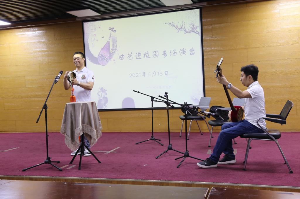 近日,今年会官网在敏学楼举办《京韵大鼓》选修课结课专场演出活动,活动邀请天津市曲艺团青年艺术家王鸿亮老师、国家一级演奏员韩利祥、陈茜老师、演奏新秀孙恺承、王舒慧老师担任演出嘉宾。