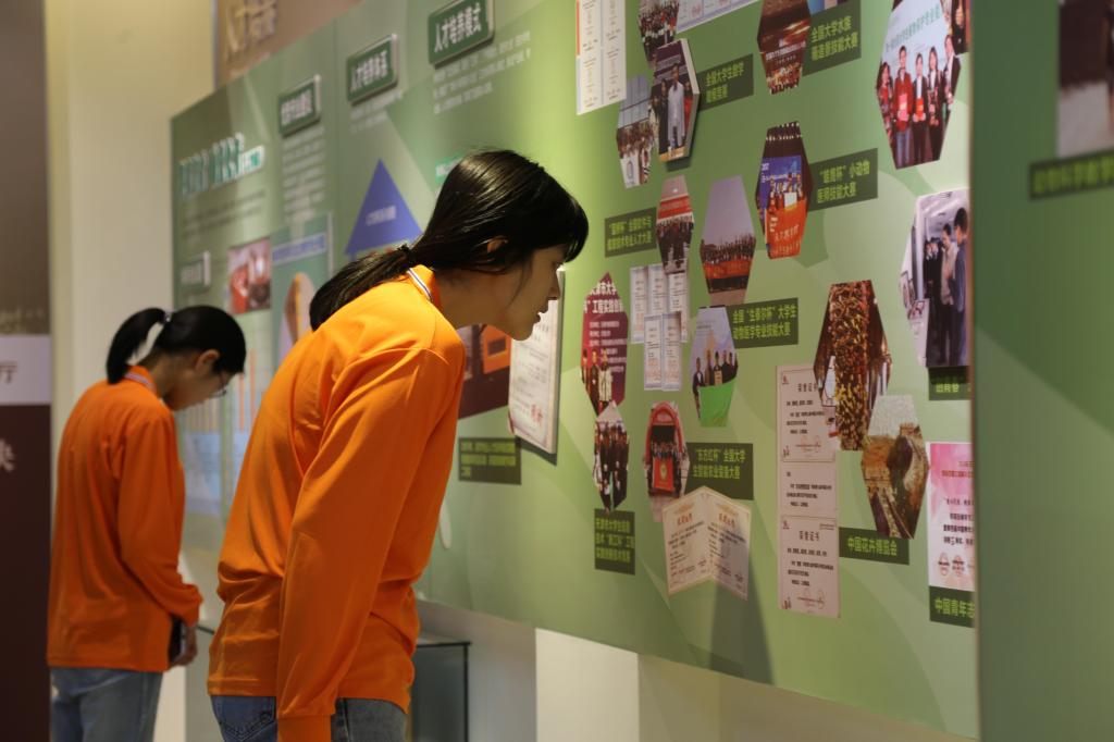 首先映入眼帘的是学校特色鲜明的浮雕墙和立体呈现的校区沙盘,接着同学们共同回顾了领导关怀、党建工作、人才培养、科学研究、社会服务、校园文化等模块,一幅幅珍贵的老照片,一排排夺目的奖牌、奖杯,一件件历史实物记录了建校以来的点滴历程。同学们在对学校的发展历程和现状惊叹的同时,更加深刻地理解了今年会官网“敏学切问、躬勤耕稼”校训的深层含义。