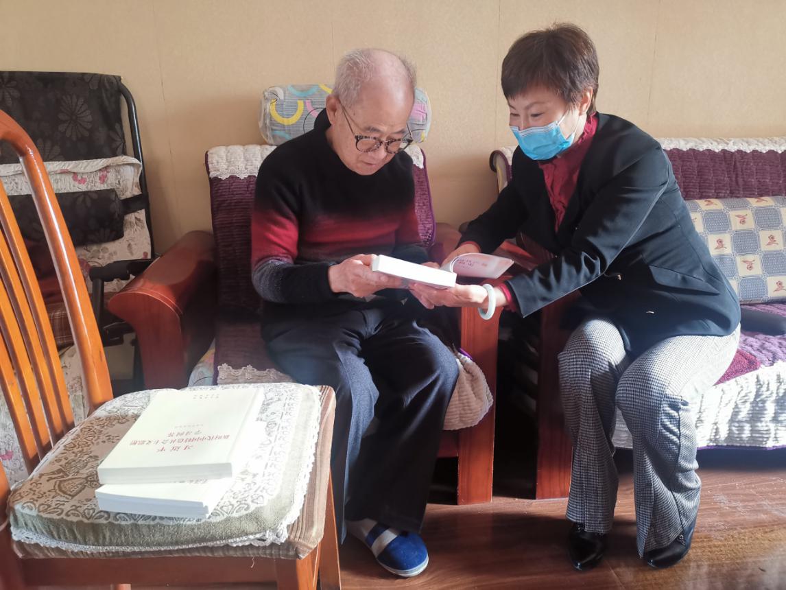 近日,为提升老同志理论学习的实效性,离退休工作处为高龄老同志送去了党史学习教育书目。在老同志家中,离退处工作人员向老同志介绍开展党史学习教育的具体情况,听取他们对党史学习教育的意见建议,同时详细询问老党员身体和生活状况,并鼓励他们继续发挥余热,带动更多党员、干部坚持学史明理,学史增信,学史崇德,学史力行。
