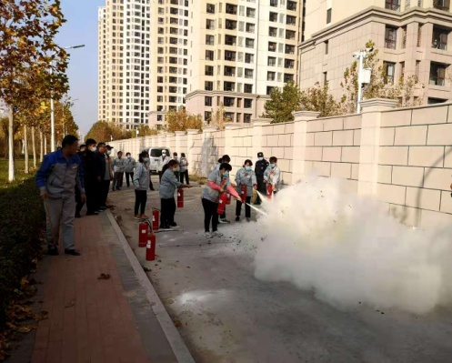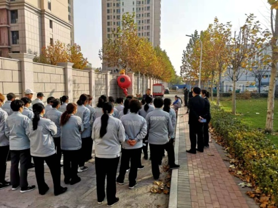 11月12日,总务处和安全工作部联合组织在校服务的物业公司员工在东校区开展消防安全实训演练。