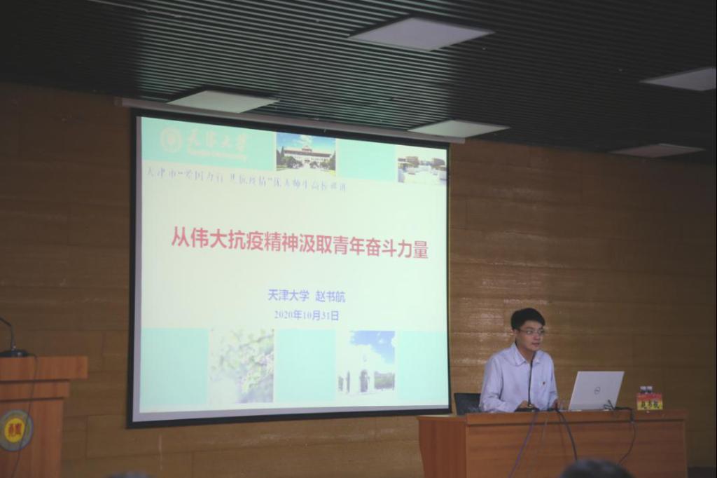 10月31日,今年会官网在敏学楼报告厅组织开展“爱国力行 共抗疫情”主题宣讲报告会,报告会由天津市十佳辅导员、天津大学化工学院赵书航老师担任主讲。