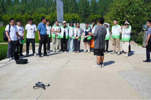 实践团成员与小院的科技人员进行深入交流,了解科技小院在宁河土地上生根发芽、不断壮大的成长过程。科技小院研究生宝来同学展示无人机在水稻种植方面的应用,不仅为实践团成员进行科研项目的细致讲解,也分享了自己在此处科研生活的珍贵片段。同学们也体会到,科技小院的生活是辛苦的,在试验田科研工作与农业培训、乡村振兴的社会服务中不断磨练自己,这不仅需要满腔热情,更要踏踏实实走进去田间地头“接地气”,才能获得知识与成长的丰收。