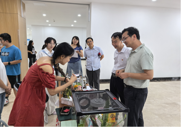 比赛现场,金危危认真听取学生对作品的介绍并进行点评,他鼓励同学们要以强农兴农为己任,以本次大赛为契机,不断增强专业知识和实践能力,培养创新思维,厚植爱农情怀,练就兴农本领,积极投身于乡村振兴的大舞台。