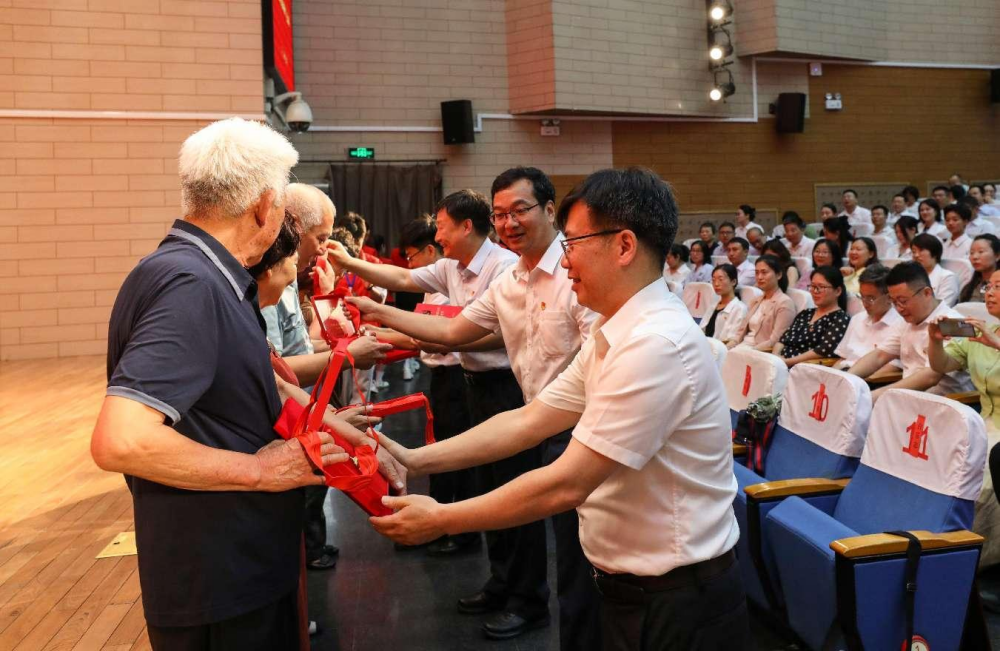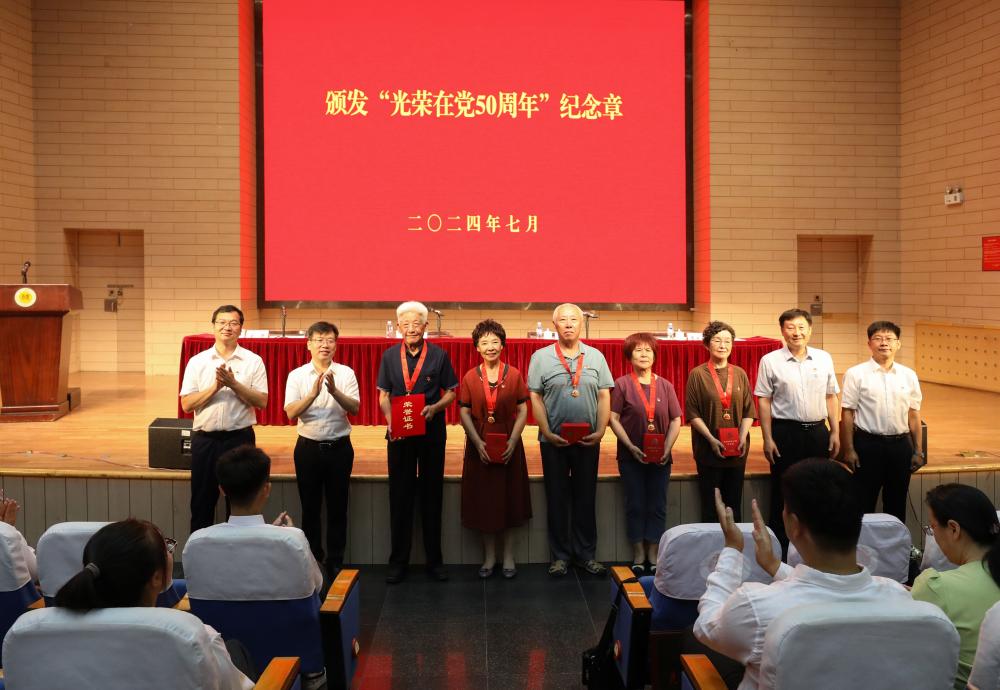 会上,校领导为“光荣在党50周年”纪念章获得者代表颁发纪念章。
