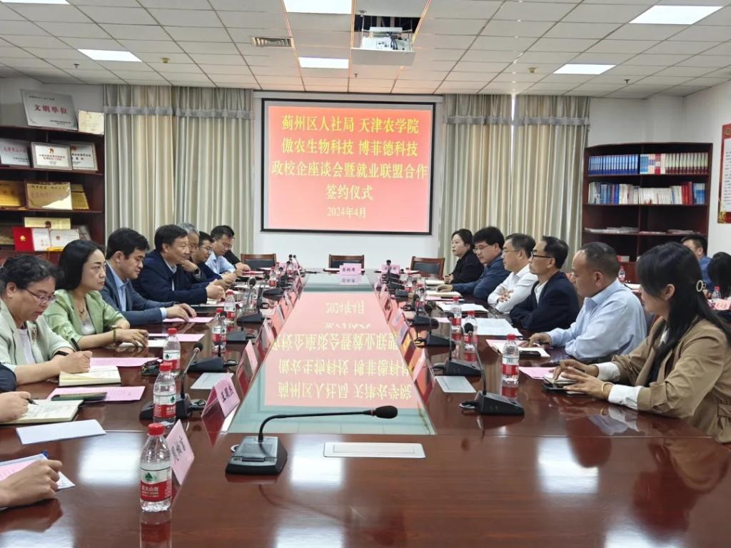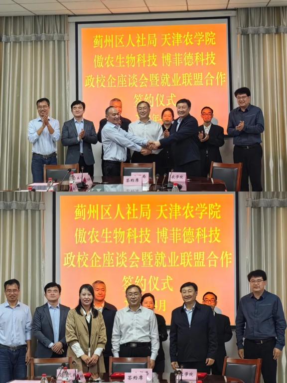 水产学院、动物科学与动物医学学院分别与天津市傲农生物科技有限公司、天津市博菲德科技有限公司、天津市渔阳水利管理有限公司进行了人才供需对接交流。参会代表共同观看了相关视频资料。