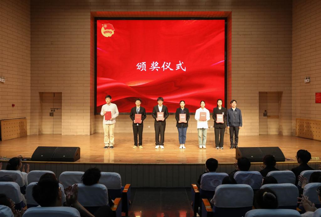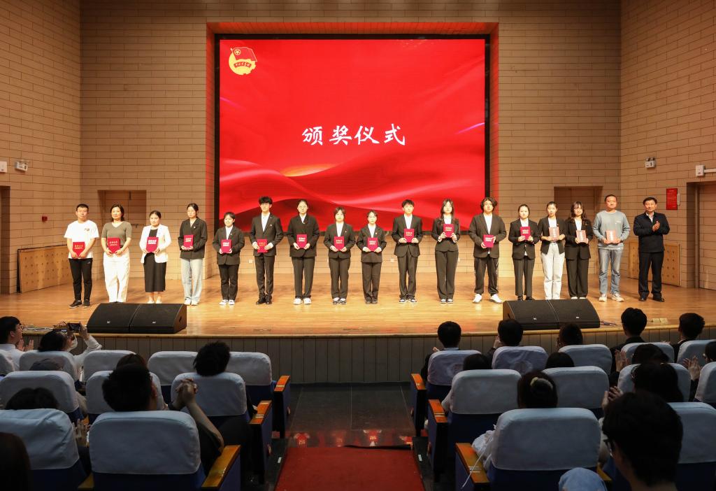 与会领导为天津市五四红旗团委、天津市五四红旗团支部、天津市优秀共青团干部、天津市优秀共青团员、校级五四红旗团委、校级五四红旗团支部、校级优秀团干部、渤海道德奖学金获得者颁发荣誉证书。