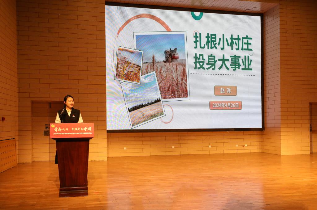 优秀毕业生代表2021届毕业生、武清区大良镇西苏庄村第一书记赵洋以《扎根小村庄 投身大事业》为题,讲述了自己从入选市青马工程培训班到考取选调生后与“基层”的不期而遇。三年来,她闯过了方言关、饮食关、生活关、劳动关,与当地村民同吃、同住、同学习、同劳动,以实际行动推进乡村振兴。