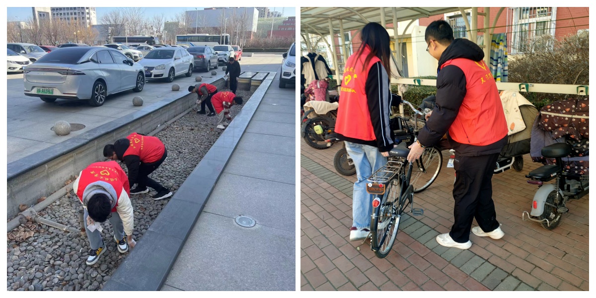 工程技术学院农机新能源学生党支部和测控电气学生党支部开展“志愿服务创建文明校园”主题党日活动,结合习近平总书记视察天津重要讲话精神,开展题为《站在高起点,为建设现代化天津善作善成》的主题党课。组织学生党员和入党积极分子开展清洁校园志愿服务活动。志愿者们身着红马甲,以东校区主干道为分界线成立两个小组,大家分工明确、各司其职、团结一致,对负责区域的环境卫生进行综合整治,对每栋楼宇附近的自行车进行文明摆放,校园内随处可见的红色身影成为了一道亮丽的风景线。