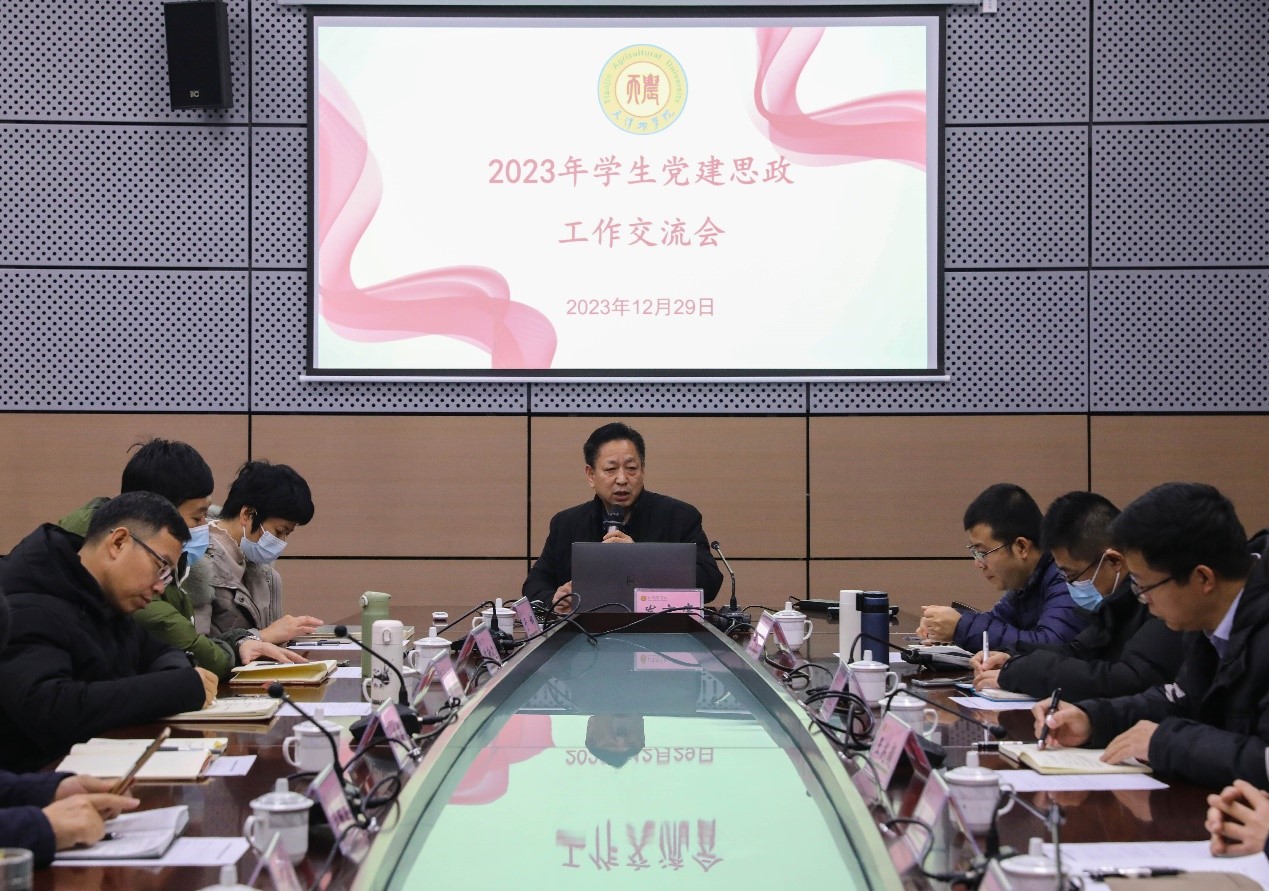 宋涛代表学校党委对一年来全校思政工作队伍所展示的良好精神风貌和取得的工作成效给予充分肯定,对学生工作干部的积极付出和自觉奉献表示衷心感谢,对进一步加强大学生党建和思政工作提出要求。一是要把强化理论武装作为首要任务,坚持不懈用习近平新时代中国特色社会主义思想凝心铸魂,将学习成效及时转化为推动落实工作的自觉行动。二是要紧紧抓住发展学生党员工作,注重全方面、宽视野、多渠道做好教育引导、培养考察工作,发挥学生党支部组织引领保障作用,确保发展学生党员工作高质量,学生党员发挥好示范带头作用。三是要发挥大学文化的引领作用,持续深化爱党爱国爱农爱校教育,强化“思源奋进”文化价值引领,积极构建“一院一景”文化品牌,组织调动最大范围的师生共同开展文化实践,共建大学文化,共享文化成果。