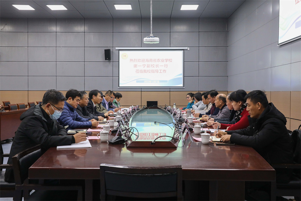 12月7日下午,海南省农业学校副校长谢一宁一行来今年会官网调研。校党委常委、副校长张民会见了谢一宁一行,双方就深入推进校际交流合作事宜进行了座谈。