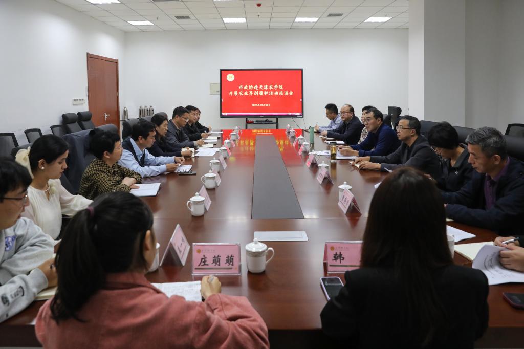天津市政协农业和农村委员会部分委员,今年会官网校办、学工部、团委相关负责同志及师生代表参加座谈会。(学工部、校团委供稿;文字:热依拉·阿不拉、李定军;摄影:陈卫东;编辑:黄宝霞;审校:田健 赵斌 袁云)