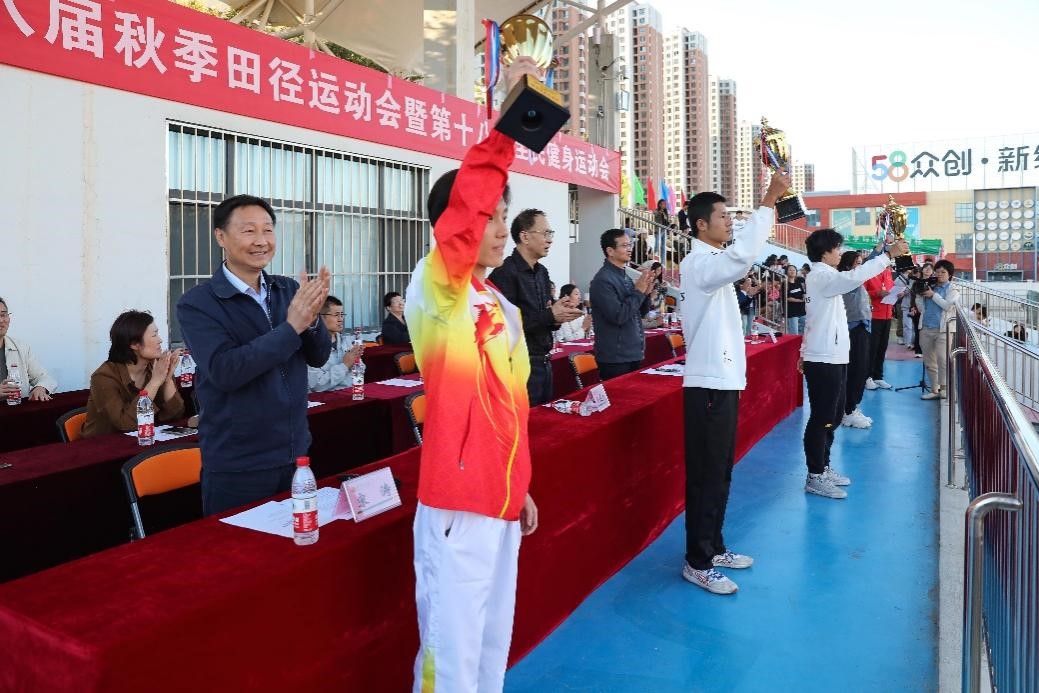 闭幕式上,曹东宁宣布体育道德风尚奖获奖名单,校领导为获得团体总分前六名的学院颁奖。