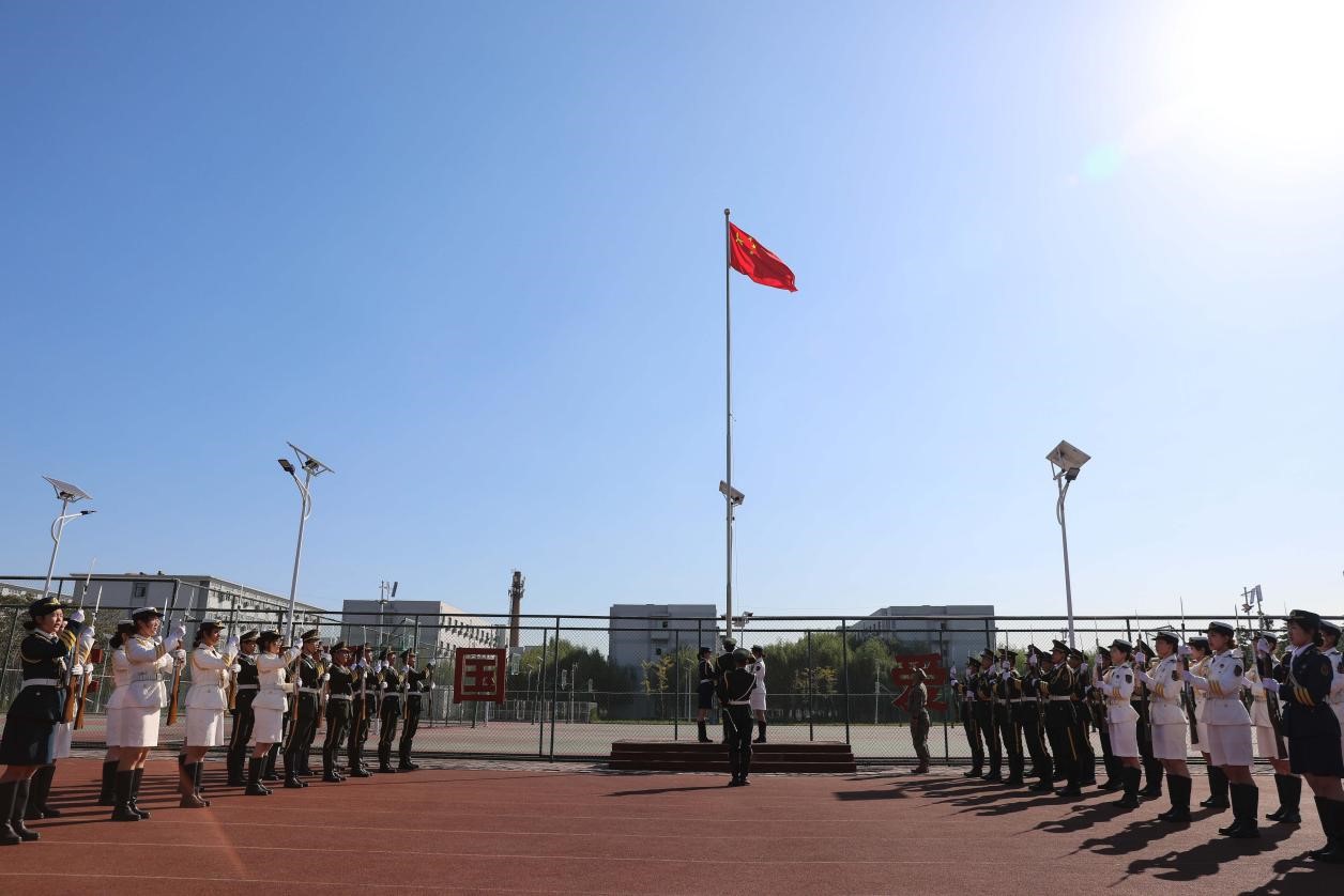 鲜艳的五星红旗在全体师生齐声高唱国歌声中冉冉升起,开学典礼在庄严的氛围中拉开序幕。伴随着校歌激情欢快的旋律,三名旗手护卫着校旗走向主席台,全体师生齐唱校歌。