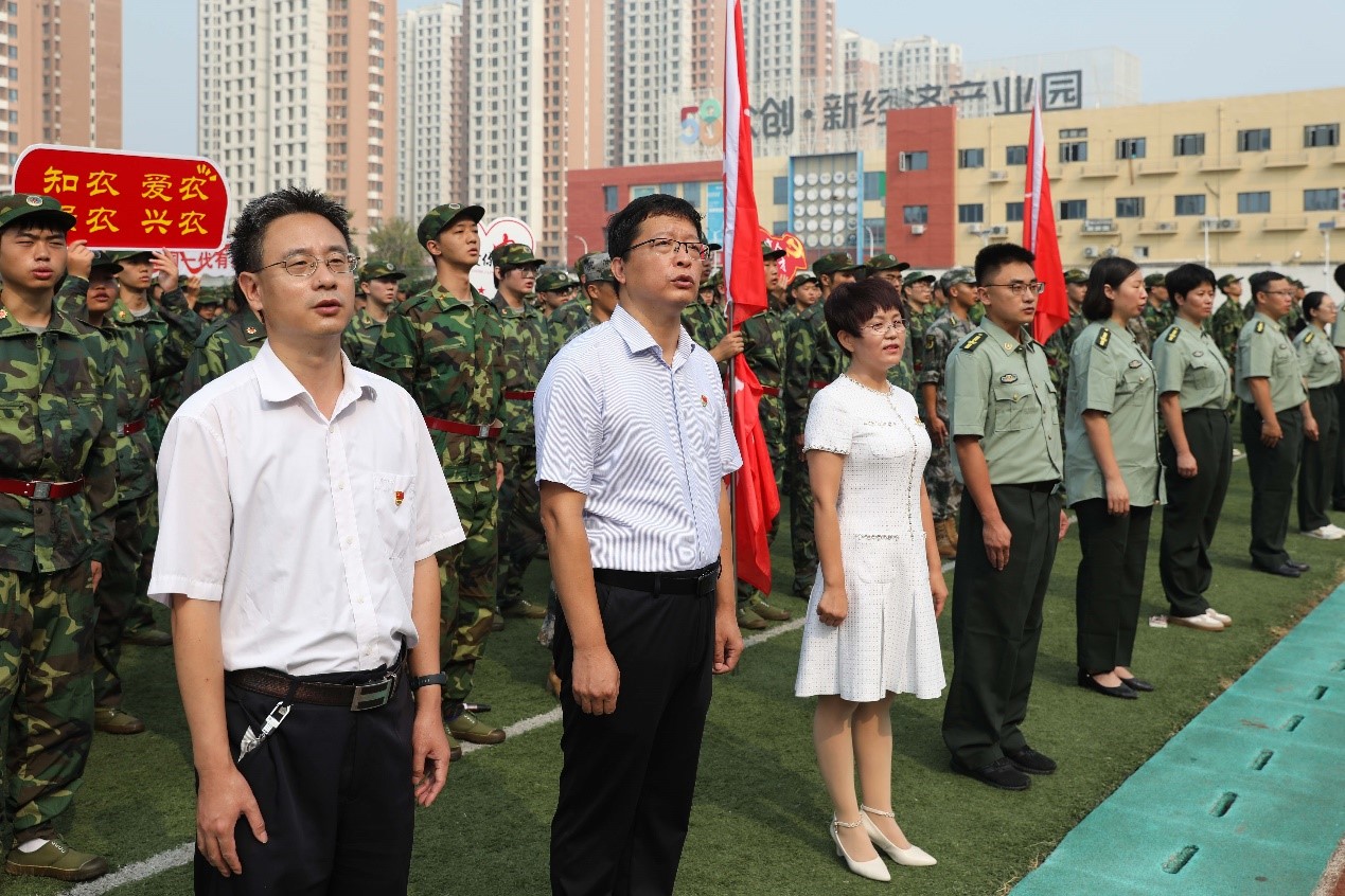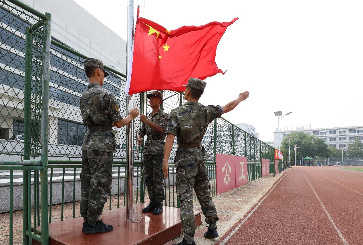 “向国旗敬礼!”伴随着响亮的口号,师生向国旗行注目礼,齐声高唱中华人民共和国国歌,五星红旗伴随着雄壮的国歌声冉冉升起。