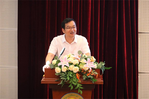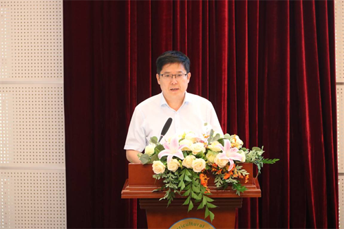 王延文致欢迎词。他表示,京津冀协同发展是习近平总书记亲自谋划、亲自部署、亲自推动的重大国家战略。京津冀区位、市场、交通、资源等优势突出,基于京津冀地区建立鲜食玉米中心,是顺应鲜食玉米产业发展大势所需。“中心”广泛汇集鲜食玉米全产业链的人才和成果,集中优势资源,提升总体研发水平,以高新技术推动鲜食玉米产业升级和高质量快速发展。学校将全力支持“中心”的建设和发展,在平台打造、人才引进与培养、机制体制等方面给予政策倾斜,支持“中心”做大做强。