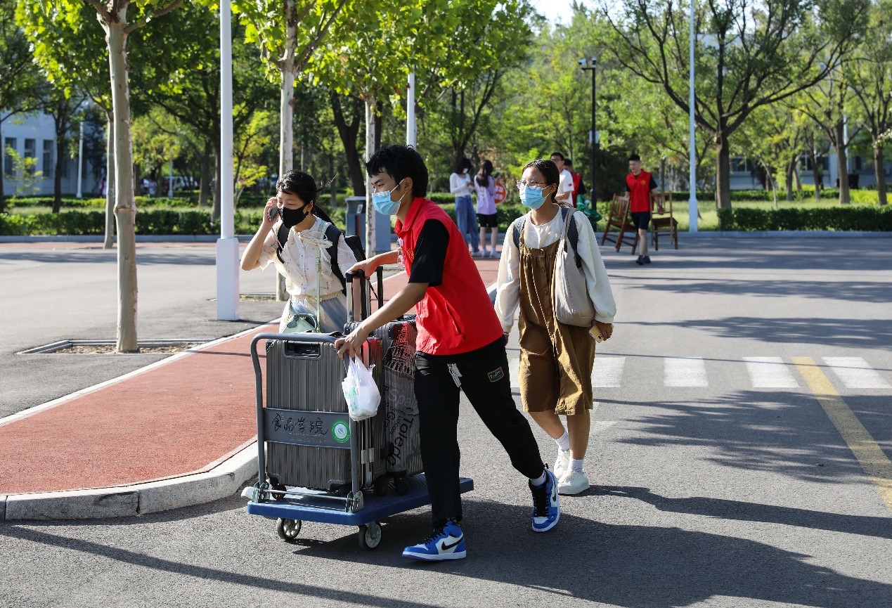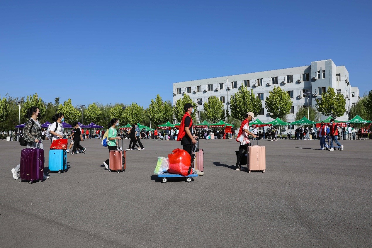 校外,接站人员热情接待每一位新同学,通勤大巴“管道式”接送新同学进入校园;校内,志愿者们引导同学们办理报到手续,帮助新同学搬运行李、入住宿舍,带领新同学熟悉校园。杨柳轻飘的道路下,新生们大步向前,熙来攘往间奔向了他们大学生涯的新起点。