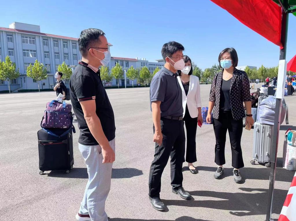学校领导高度重视本次迎新工作,开学前加强统筹谋划,严格落实疫情防控要求,精心制定了迎新方案,确保新生报到平稳、安全、有序进行。当日,校党委常委、副校长(主持工作)金危危,校党委副书记宋涛,校党委常委、副校长王繁珍,市纪委监委驻校纪检监察组组长曹东宁及相关部门负责同志来到迎新现场,慰问新生和现场工作人员。校领导详细了解新生报到、核酸检测、户籍办理、学费缴纳等工作进展情况,并与新生进行亲切交谈,询问旅途是否顺利、入校后有何困难等等。校领导的亲切问候和关怀,使新同学们倍感温暖。