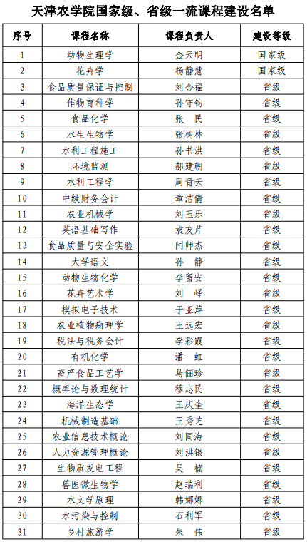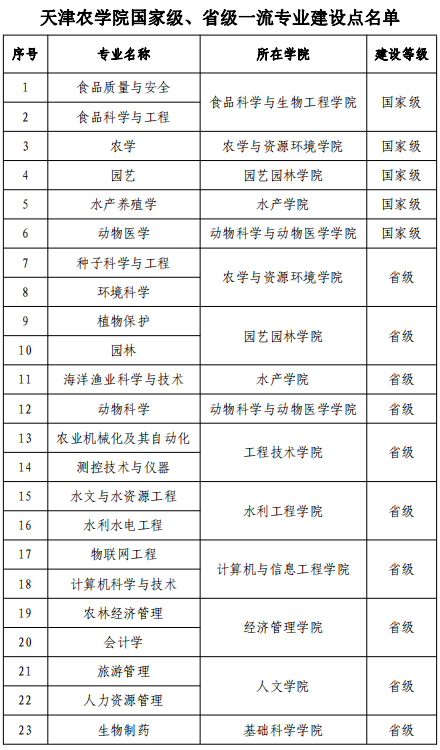 聚焦天津现代都市农业高质量发展需要,深化“四新”建设,优化学科专业布局,助推农业设施化、机械化、绿色化、数字化加快发展。以作物学、园艺学、植物保护、畜牧学、水产等特色学科为引领,计算机科学与技术、软件工程、农业工程、食品科学与工程、水利工程、农林经济管理等优势学科为支撑,重点建设“农业+环境” “农业+大数据”“农业+机器人”等交叉学科,推动形成特色鲜明、学科交叉、结构完整,覆盖农林牧渔业全产业链的学科体系;建设水族科学与技术、小动物医学、设施农业科学与工程、菌物科学与工程、数据科学与大数据技术、机器人工程等专业或方向,推动农学、园艺、水产养殖学、动物科学等传统优势专业进一步强化内涵建设,向着都市农业特色鲜明、示范效应突出的方向发展。围绕服务乡村发展新产业、健康中国新业态、市场经济新发展、基层社会治理新模式、美丽乡村新生态,建设7个市级特色学科群、15个特色专业群;6个涉农专业获批国家级一流本科专业建设点,17个专业获批省级一流本科专业建设点;获批2门国家级一流本科建设课程,29门省级一流本科建设课程,10门天津市课程思政示范课程。获天津市教学成果一等奖3项,二等奖5项。“百团百村心连心 共建和谐新乡村”已形成品牌化大学生社会实践模式,多次受到省部级以上表彰。