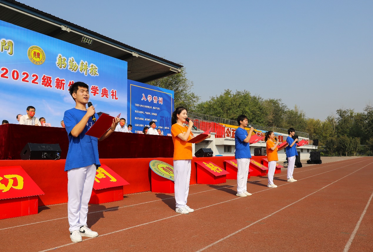 “迎接新鲜血液,共同为新时代蓄势待发,以豪情满怀喜迎二十大,志存高远踏上新征程,致敬天农的荣光。”2021级硕士研究生郭云鹏、2019级本科生杨竞凌等5位同学代表在校生致欢迎辞。