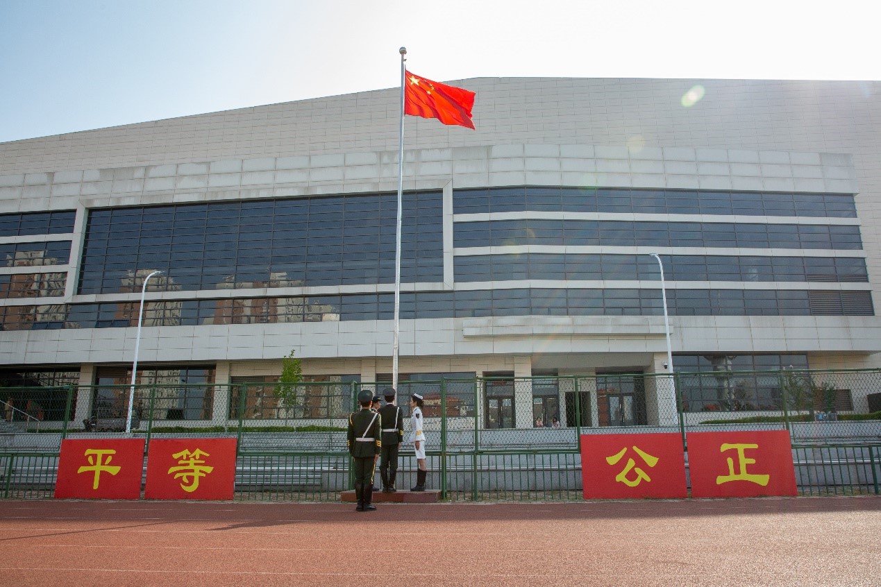 上午9点,升旗仪式正式开始,校国旗护卫队队员庄严列队,目光坚定。伴随着雄壮的国歌,五星红旗在晨光中冉冉升起。到场师生庄严肃立,面向国旗行注目礼,表达对革命先烈深深的缅怀与崇高的敬意。