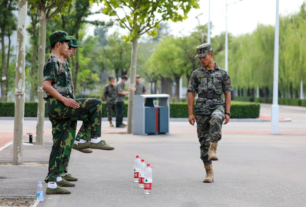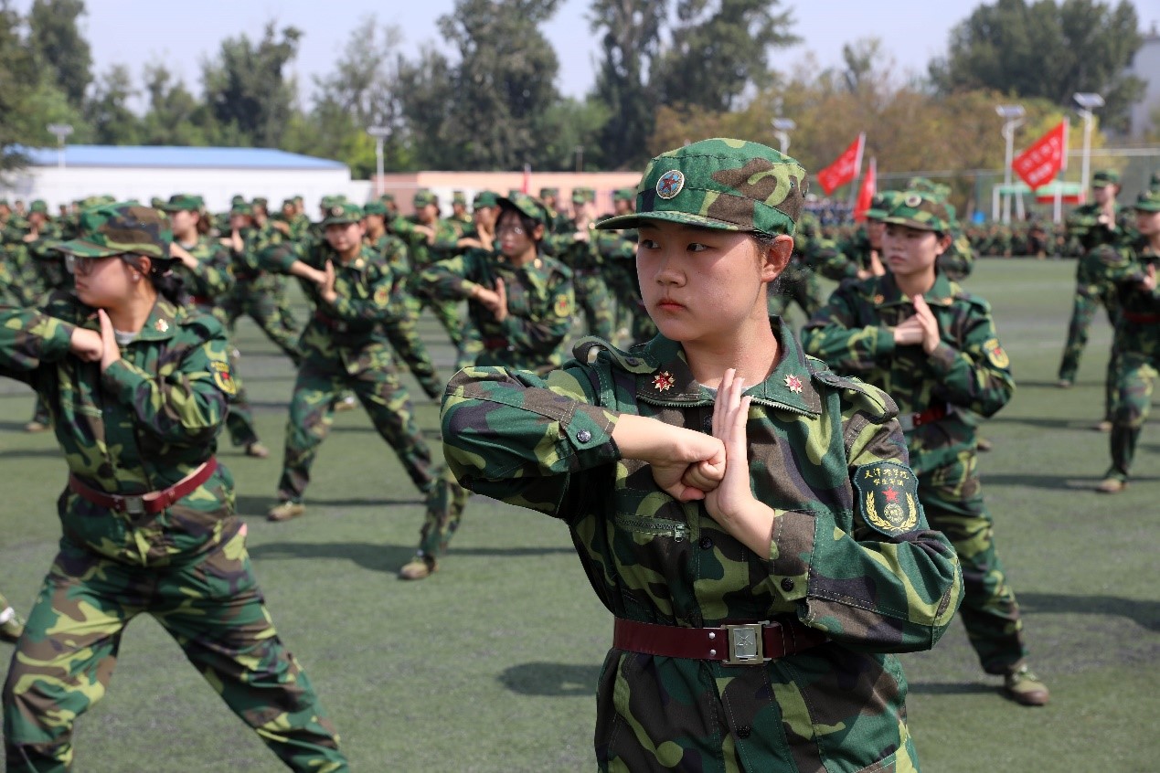 教官一声令下,动作整齐划一,迈着铿锵有力的步伐,警棍盾牌术方阵、匕首操方阵、刺杀操方阵、擒敌拳方阵,依次进行军训科目展示。警棍盾牌术方阵,集劈、戳、撩、抡、扫于一身,杀声震天,尽展军人血性;匕首操方阵,快捷流畅,刀起是飒爽,刀落是坚定;刺杀操方阵,动作的“快准狠”,打出了气吞山河的气势;擒敌拳方阵在一招一式中,气势威武,动作娴熟而又充满力度。战术科目队伍,更是将反应迅速、英勇顽强、协同配合默契的战斗作风展现得淋漓尽致,获得阵阵掌声。