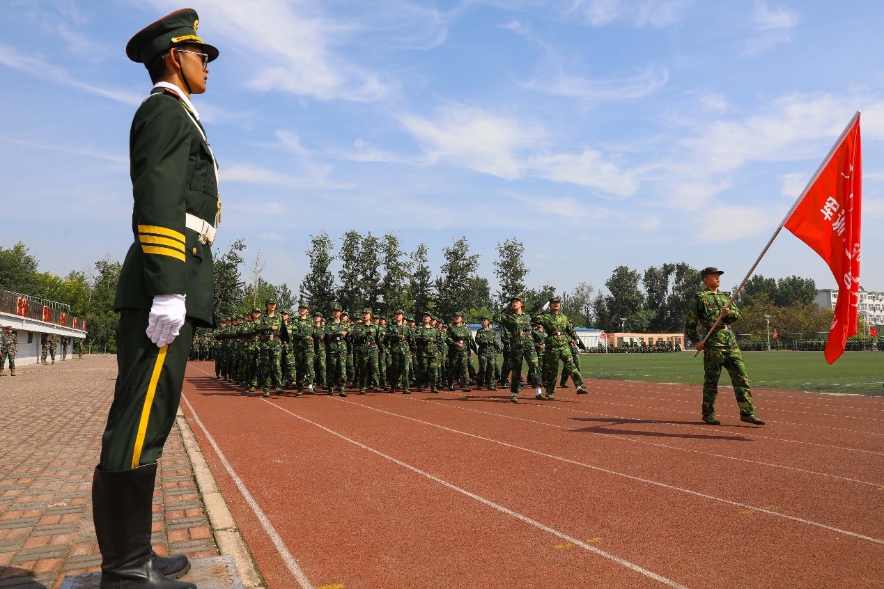 伴随着全场师生嘹亮激昂的国歌声,五星红旗冉冉升起,军训成果汇报大会拉开帷幕。