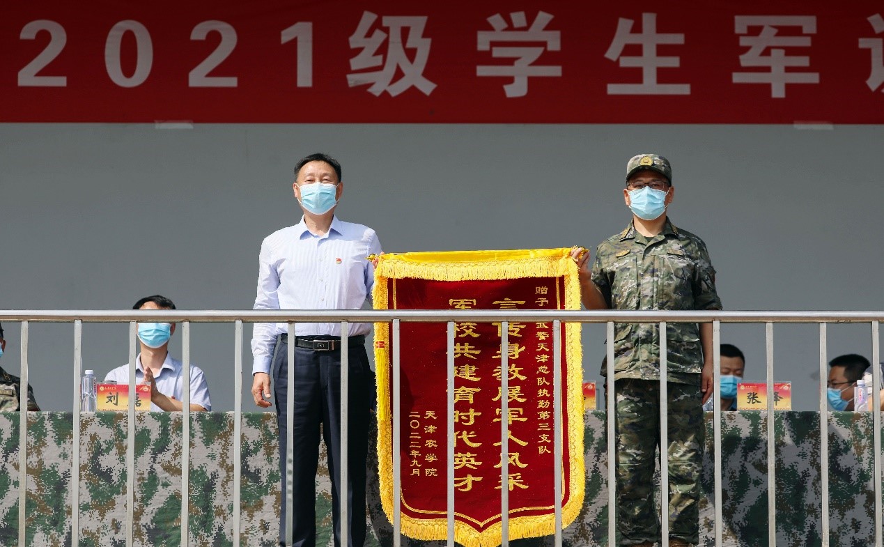 宋涛代表学校向承训部队赠送锦旗,对承训部队在今年会官网军训工作方面给予的无私帮助和大力支持表示由衷的感谢。