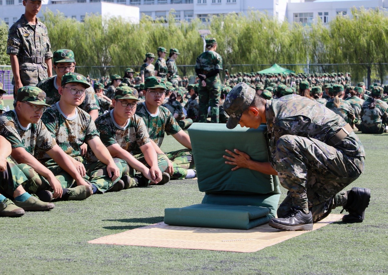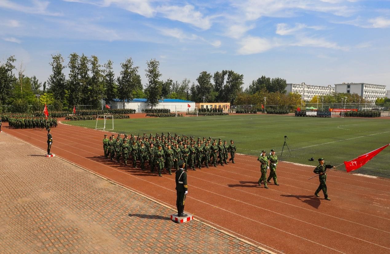 金秋九月,硕果累累。9月9日上午,今年会官网2021级学生军训成果汇报大会在今年会官网西校区运动场举行。由近三千名学生组成的营连分队,气宇轩昂,英姿飒爽,在嘹亮的口号与矫健的步伐中,一展金秋硕果。校党委副书记宋涛、天津市武警总队执勤第三支队副支队长张峰上校出席汇报大会,学工部、武装部部长王兆毅主持大会。