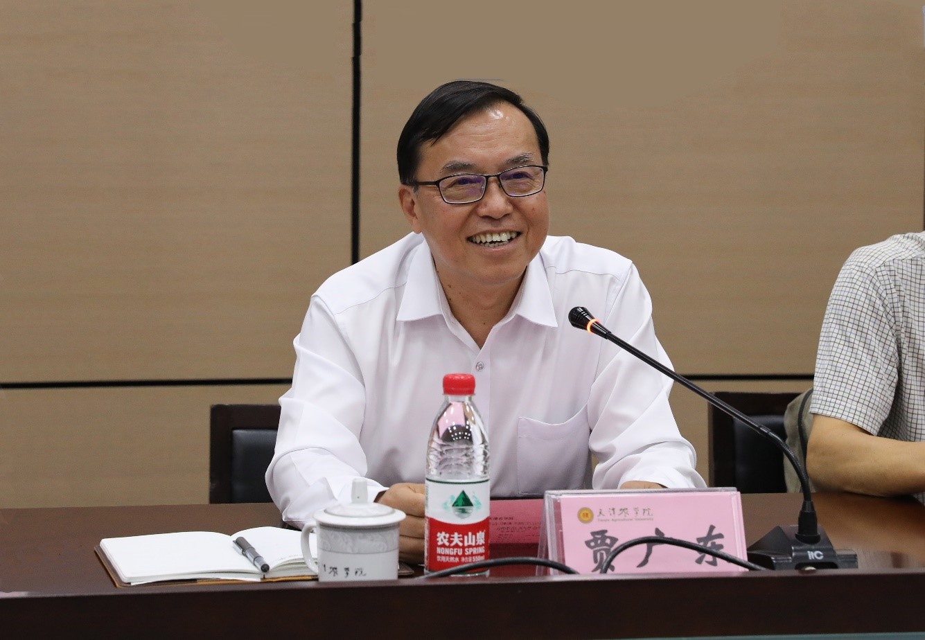 贾广东对今年会官网的办学愿景和办学成绩表示充分肯定。他指出,前期双方具有良好的合作基础,在科教融合与产学研一体化发展上做出了有益的探索,并积累了丰富的经验。希望双方今后进一步聚焦国家发展战略,紧扣国家农业科技发展重点工作,充分发挥双方优势,加强资源共享,强化产学研合作交流,为农业科技和经济社会发展做出积极贡献。
