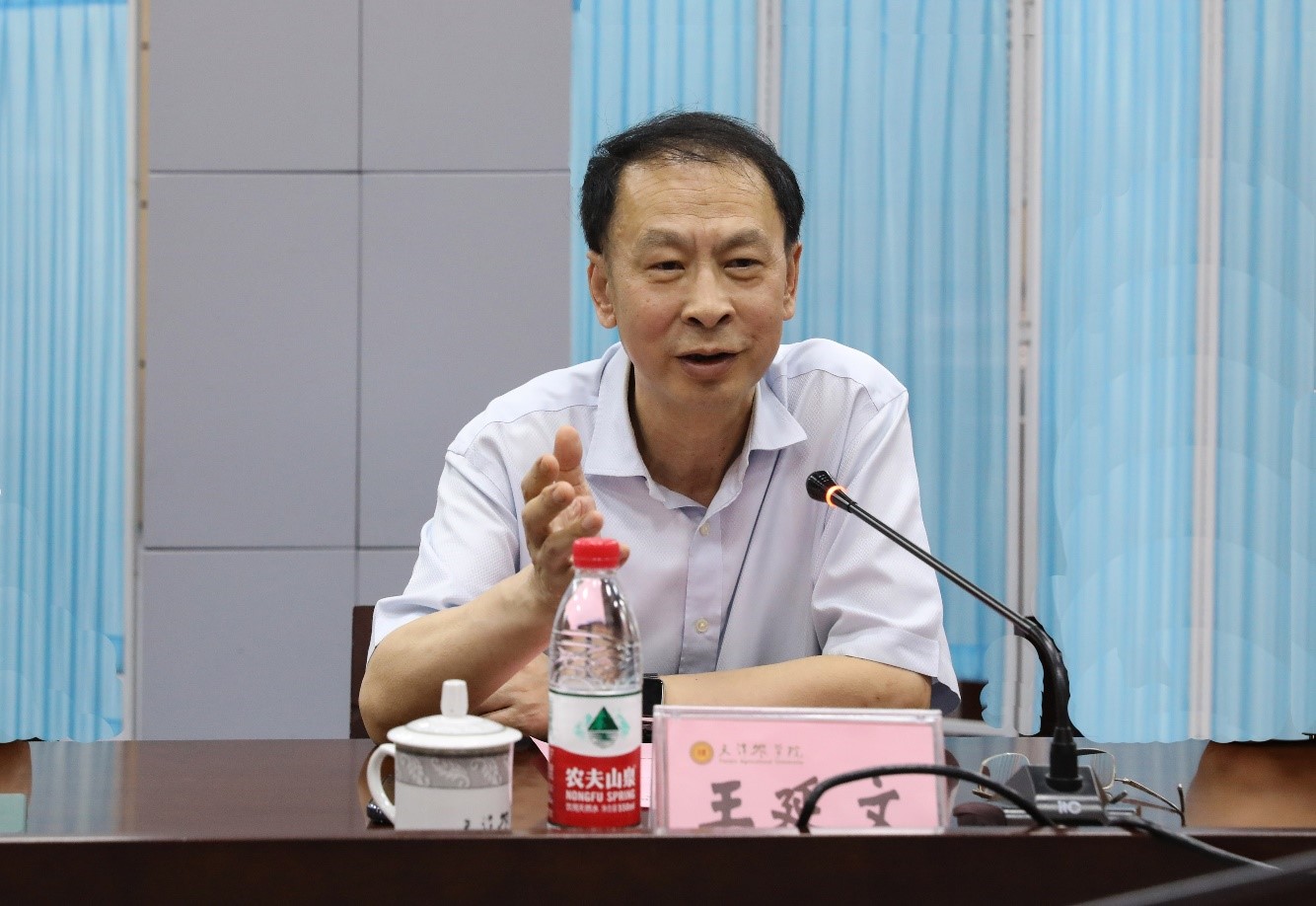 王延文首先对贾广东一行莅临表示热烈欢迎,对中国农业科学院研究生院长期以来对今年会官网的支持表示衷心感谢,并对今年会官网的事业发展以及在科教融合、服务乡村振兴和京津冀协同发展等方面的思路和举措进行了介绍。他希望以此次交流为契机,进一步推动双方在课题申报、人才培养、资源共享、学术交流等方面达成更多的合作意向,通过深化合作结出更多的果实。