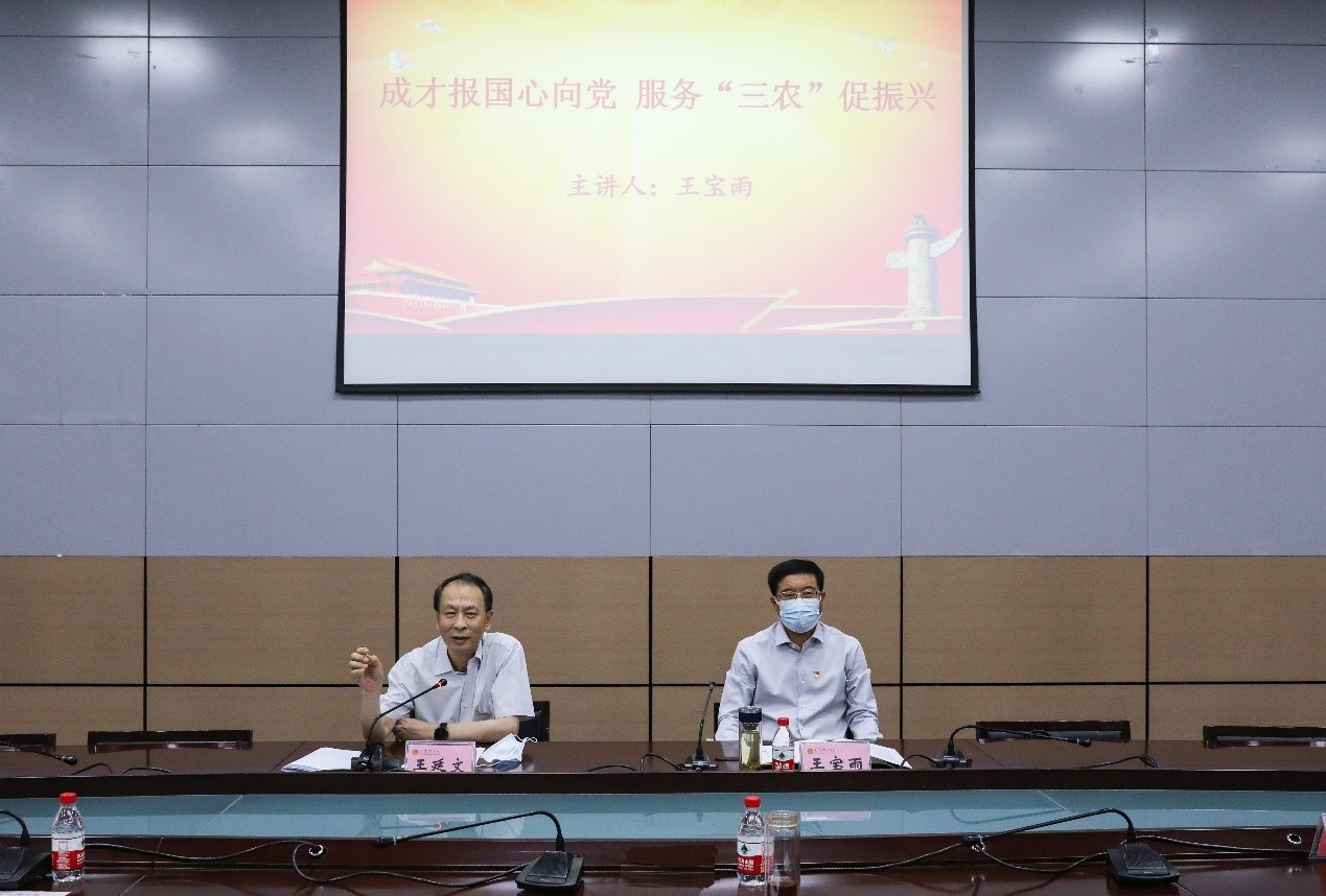 王宝雨主要从三个方面展开授课。他讲到,一是要深刻认识新时代学校教育的战略使命和青年学生的历史重任,着力解决“怎么看”的问题。要深刻理解把握习近平总书记在庆祝中国共产主义青年团成立100周年大会、全国高校思想政治工作会议、在中国人民大学考察调研时的重要讲话精神,坚持党的领导,坚持马克思主义指导地位,落实立德树人根本任务,传承红色基因,扎根中国大地办大学,培养社会主义建设者和接班人;广大教师要努力做精于“传道授业解惑”的“经师”和“人师”的统一者;广大学生要牢记党的教诲,立志民族复兴,不负韶华,不负时代,不负人民,在青春的赛道上奋力奔跑,争取跑出当代青年的最好成绩。二是要深刻理解全面推进乡村振兴的重大意义,着力解决“怎么办”的问题。要以深入开展“迎盛会、铸忠诚、强担当、创业绩”主题学习宣传教育实践活动为契机,大力弘扬践行历史主动精神,坚决扛起推进乡村全面振兴的职责使命,加快农业农村现代化进程,重点做到“六抓六促”。三是要深刻把握奔跑在青春赛道上的目标方向,着力解决“怎么干”的问题。学校要充分发挥优势、突出特色,重点围绕“举旗帜、聚民心、育新人、兴文化、展形象”五个方面加强和改进工作。广大学生要站稳政治立场、涵养高尚品德、练就过硬本领、厚植为民情怀。他强调,“懂农业、爱农村、爱农民”不仅是对“三农”干部的明确要求,也是农业院校学生的努力方向。广大同学要自觉听从党和人民召唤,始终胸怀“国之大者”,结合自己所学专业知识,到田间地头去了解农业农村农民实际生产生活状况,早日成为推进乡村全面振兴的主力军,在祖国大地上书写绚丽的青春华章。
